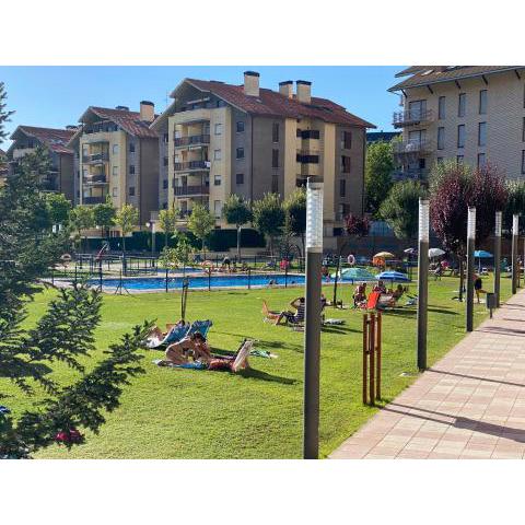 Apartamento con terraza en Jaca se nachází pouhých 24 km od vlakového nádraží Canfranc v Jace a nabízí ubytování s balkonem, zahradou a sezónním venkovním bazénem. K dispozici je také soukromý bazén. Apartmán má terasu, 2 ložnice, obývací pokoj a dobře vybavenou kuchyň s lednicí a sporákem. Ložní prádlo a ručníky jsou zajištěny. Apartmán je vzdálený 25 km od královského kláštera San Juan de la Peña a 40 km od přírodního parku Lacuniacha. Na letiště Pamplona je to 108 km.